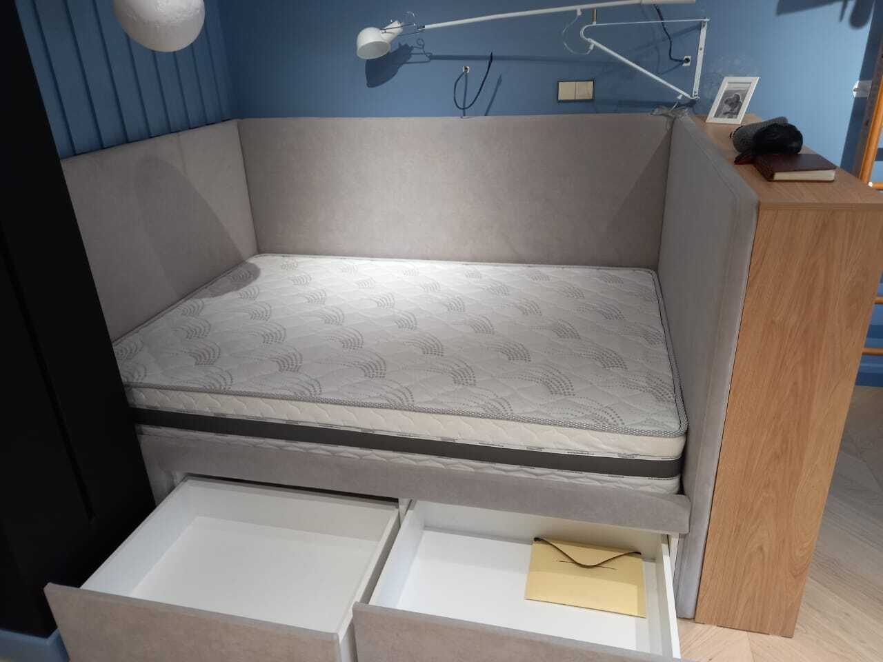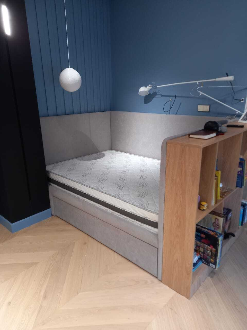 Главная> Каталог с мебелью на заказ > Кровати мягкие на заказ > Односпальные кровати > Подростковая кровать с выдвижными ящиками