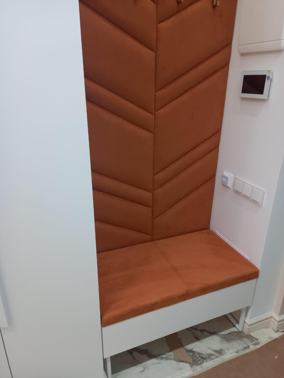 Главная> Каталог с мебелью на заказ > Мягкие стеновые панели > Панели в прихожую > Мягкая стеновая панель с подушкой