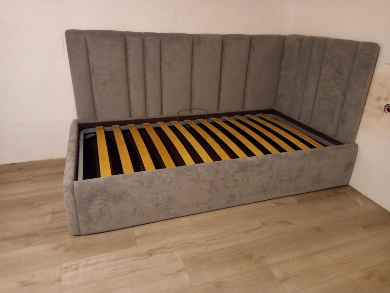 Стоимость кровати - 35 000 руб. (зависит от выбранной ткани и размера)