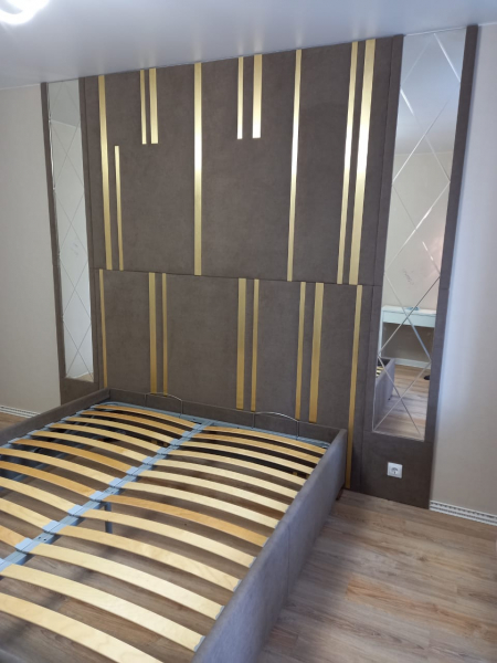 Кровать с мягкой стновой панелью. Стоимость 110 000 руб.